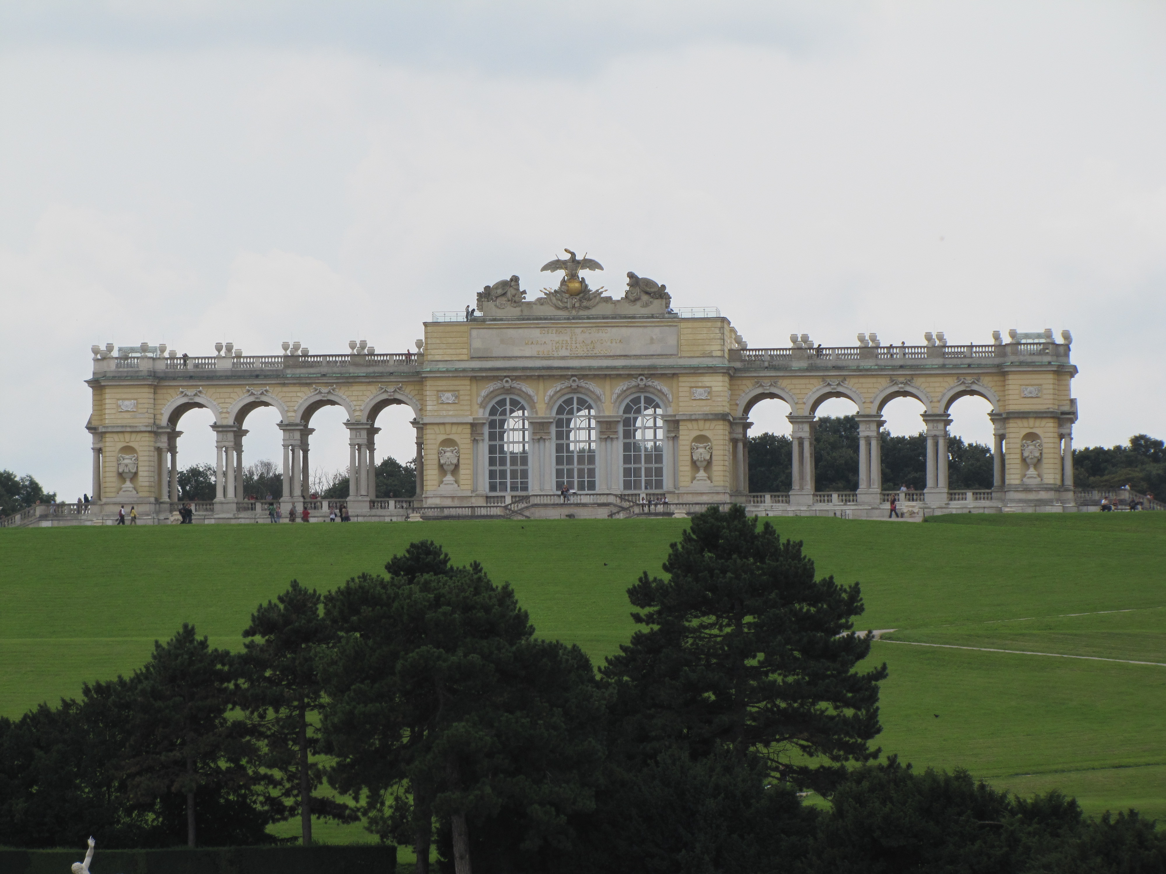 At the end of the floral promenade stands the grand the Gloriette and garden fountain. This is how to really impress! Imagine. After a long morning of listening to foreign dignitaries or constituents from the far-flung regions of your empire or even just your irascible mother-in-law, you are able to get away from it all. A leisurely stroll through the garden and then up to the Gloriette, where a servant brings you delicious water from the “beautiful spring” (no, not from the fountain!).