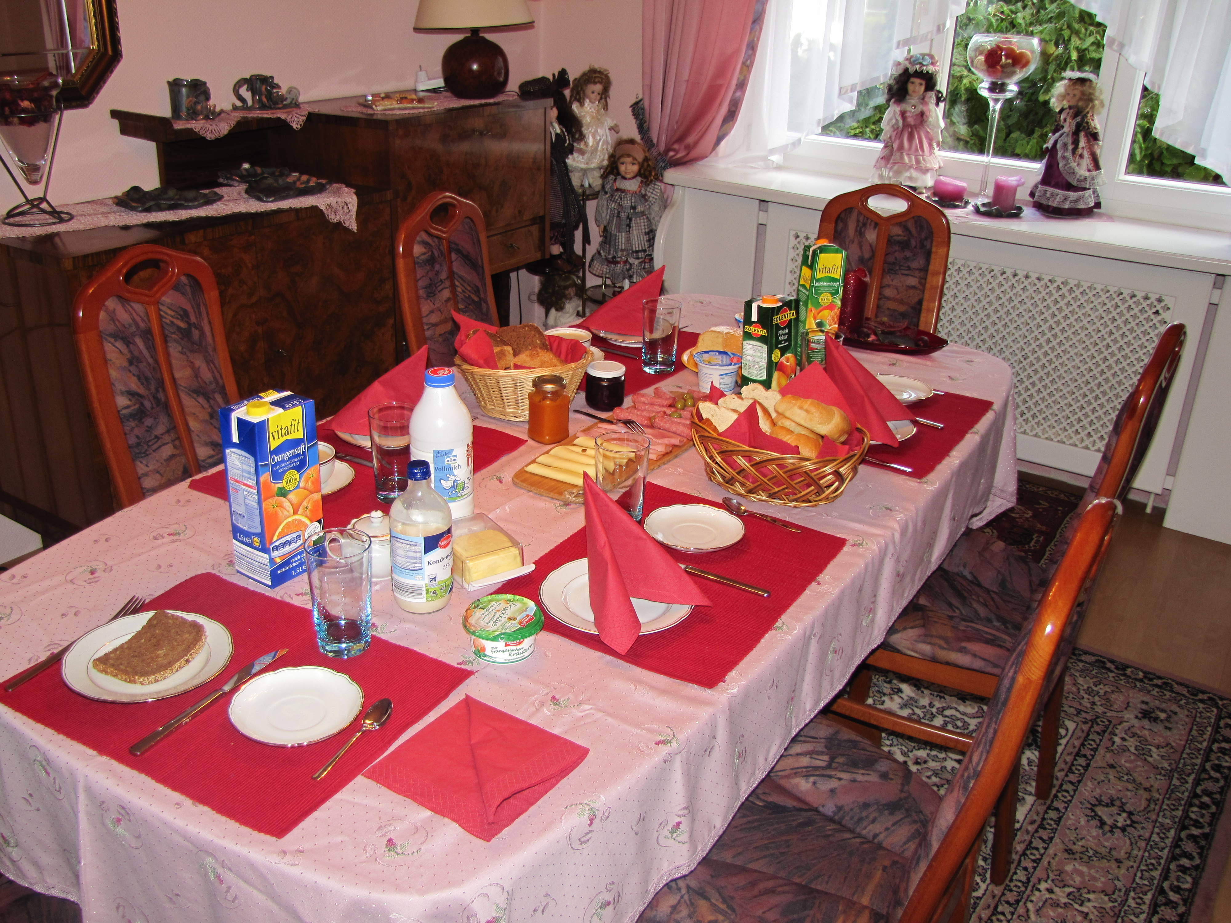 And for those curious, this is what a typical Austrian breakfast (fruhstuck) looks like. A little overboard since there were foreign visitors but basically the same staple items: bread, jam, butter, cold cuts, milk, coffee, cheese, savory spread, and fruit juice.
