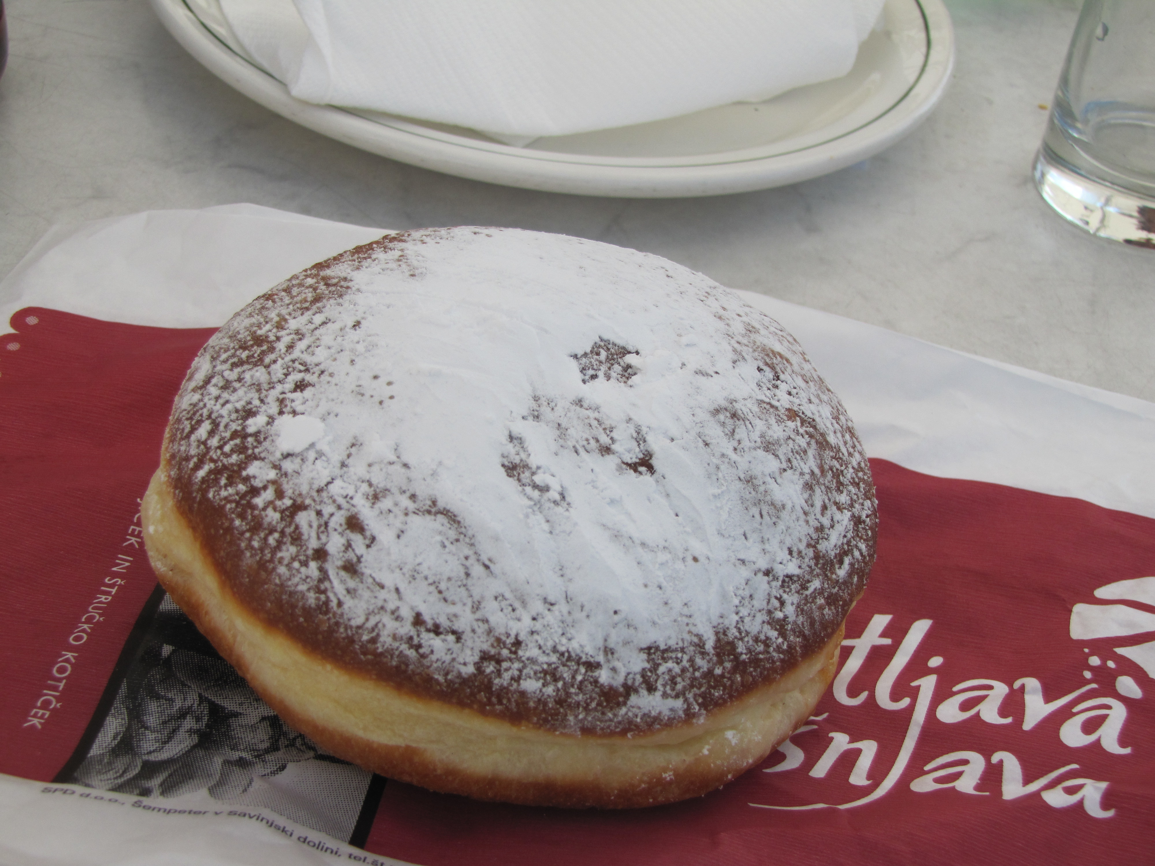 All we managed to do was to scarf down the largest hot dog we had ever seen, a krofi (stuffed Slovenia donut), and some super strong coffee, the cup of which we still have and was, when I come to think of it, our very first European souvenir.