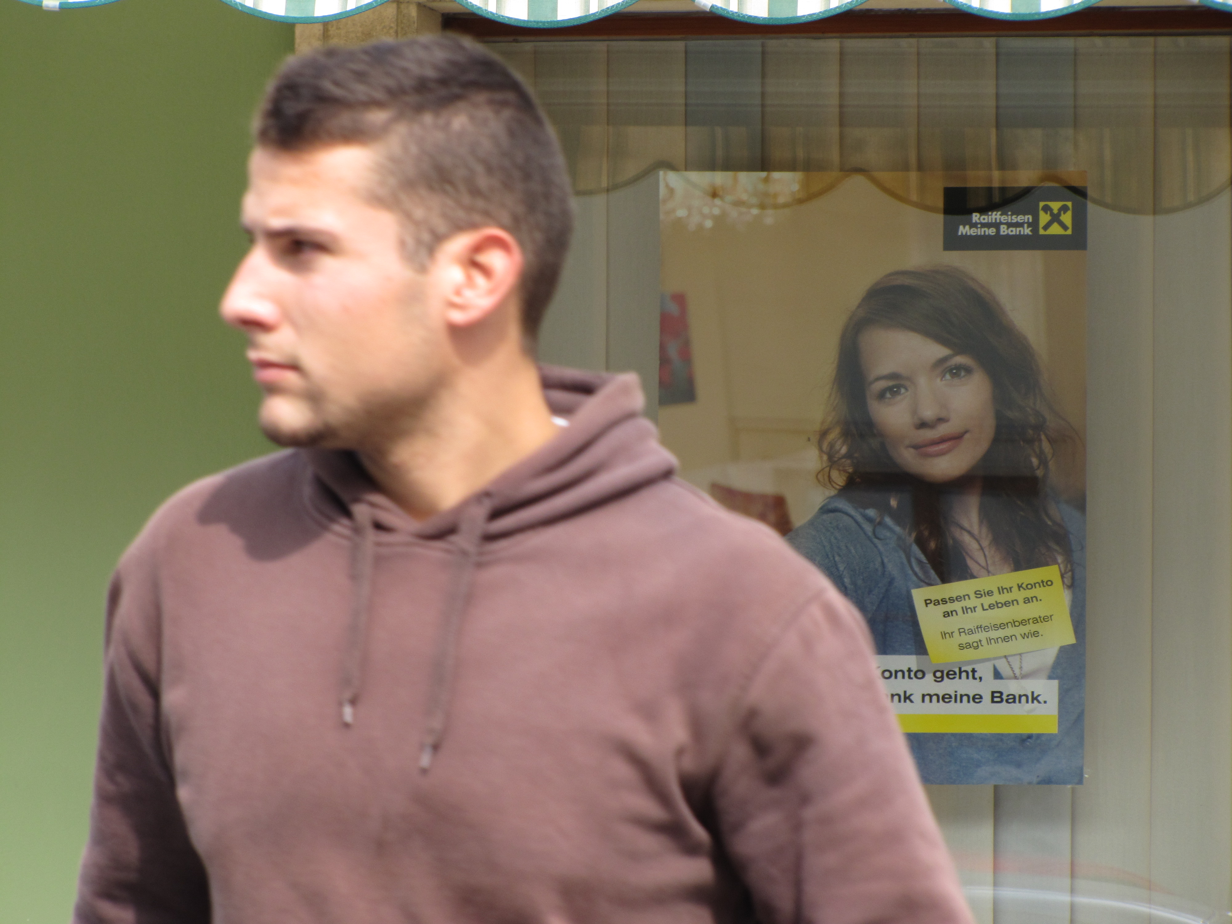 The grubby hands of modern-day advertising had even crept out into this bucolic hamlet. The ad reads something about banking or mines or banking mines or mine banking. I don’t remember what.