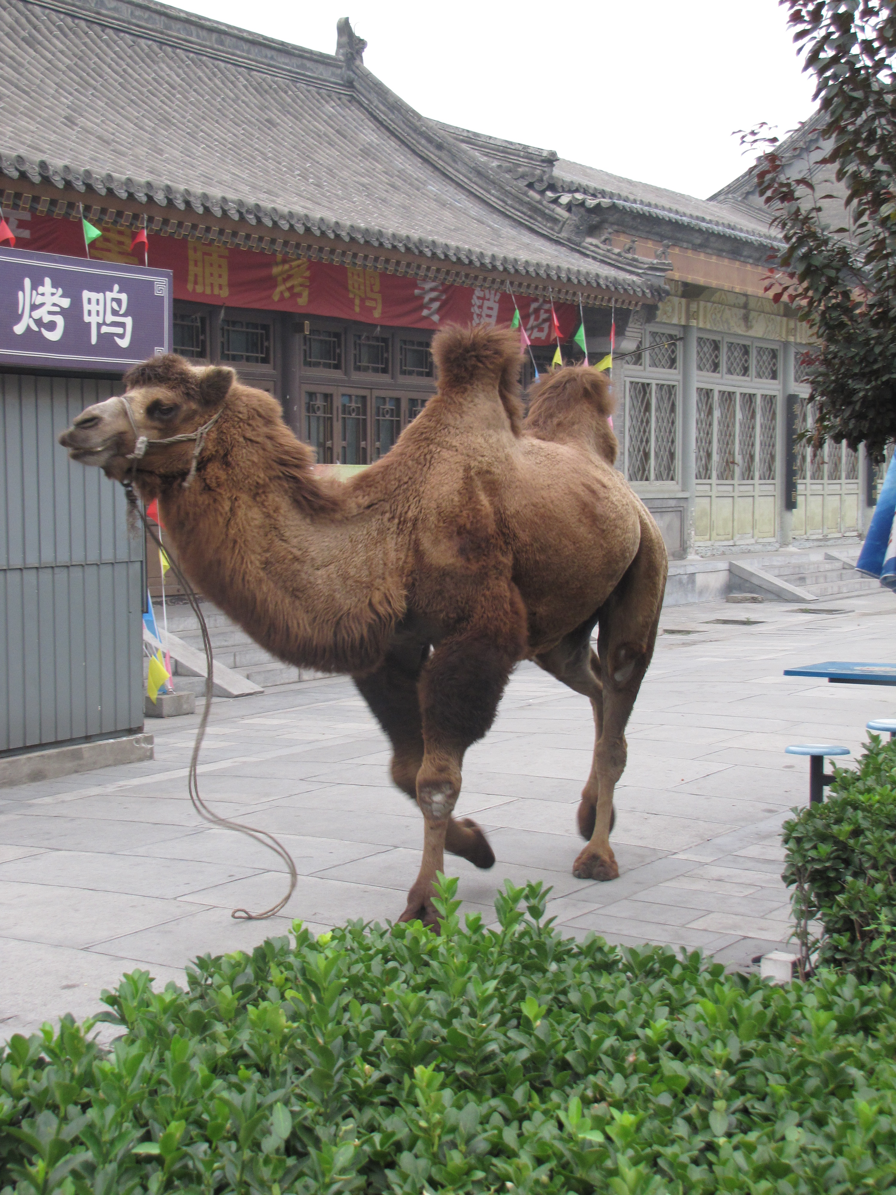 Lucky visitors are rewarded for their physical toil with a photo op of a randomly wandering camel in the parking lot.