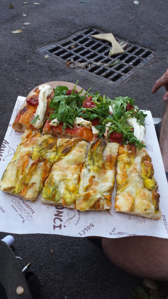 FUN FACT. Pizza in Rome and other parts of Italy are served al taglio (meaning “cut” in Italian) or, more colloquially, “by the slice” in America. Slices usually come in increments of 100 grams/1 kilogram; this a perfect opportunity to try a wide variety. Go ham! You are on vacation.