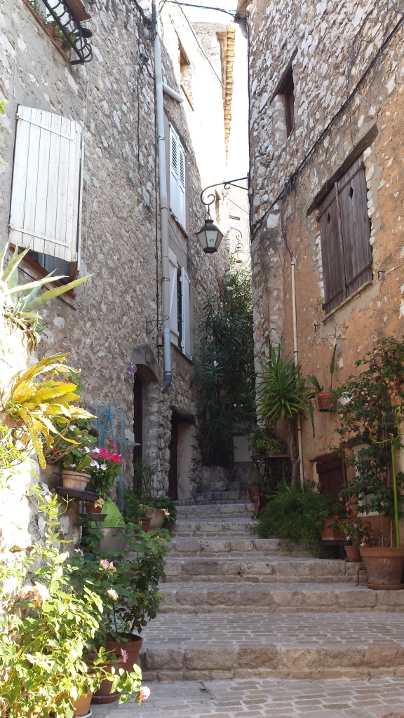 Aside from illumination, the sunlight had other abilities. It could lift moods, especially for those who came from cold or dreary climates. Sunlight could also alter behavior: remaining in the shade when the sun was blazing overhead, slowing movements and effort to limit perspiration and fatigue, wearing light and airy free-flowing clothes. This boost in well-being combined with the unhurried pace of life was reason enough long ago to resettle in Provence. The many old and quaint towns we visited like Vence and Saint-Paul-de-Vence that dotted the hillsides of this region was proof of that irresistible allure.
