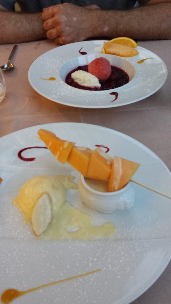 We finally returned 45 minutes later (didn’t want to come across too eager!). The woman who we had met in the parking lot, Stephanie Roch, happened to be the owner of the restaurant and quickly recognized as we came in. The restaurateur herself seated us and offered two different special four-course meals. We were star-struck. Talk about serendipity!