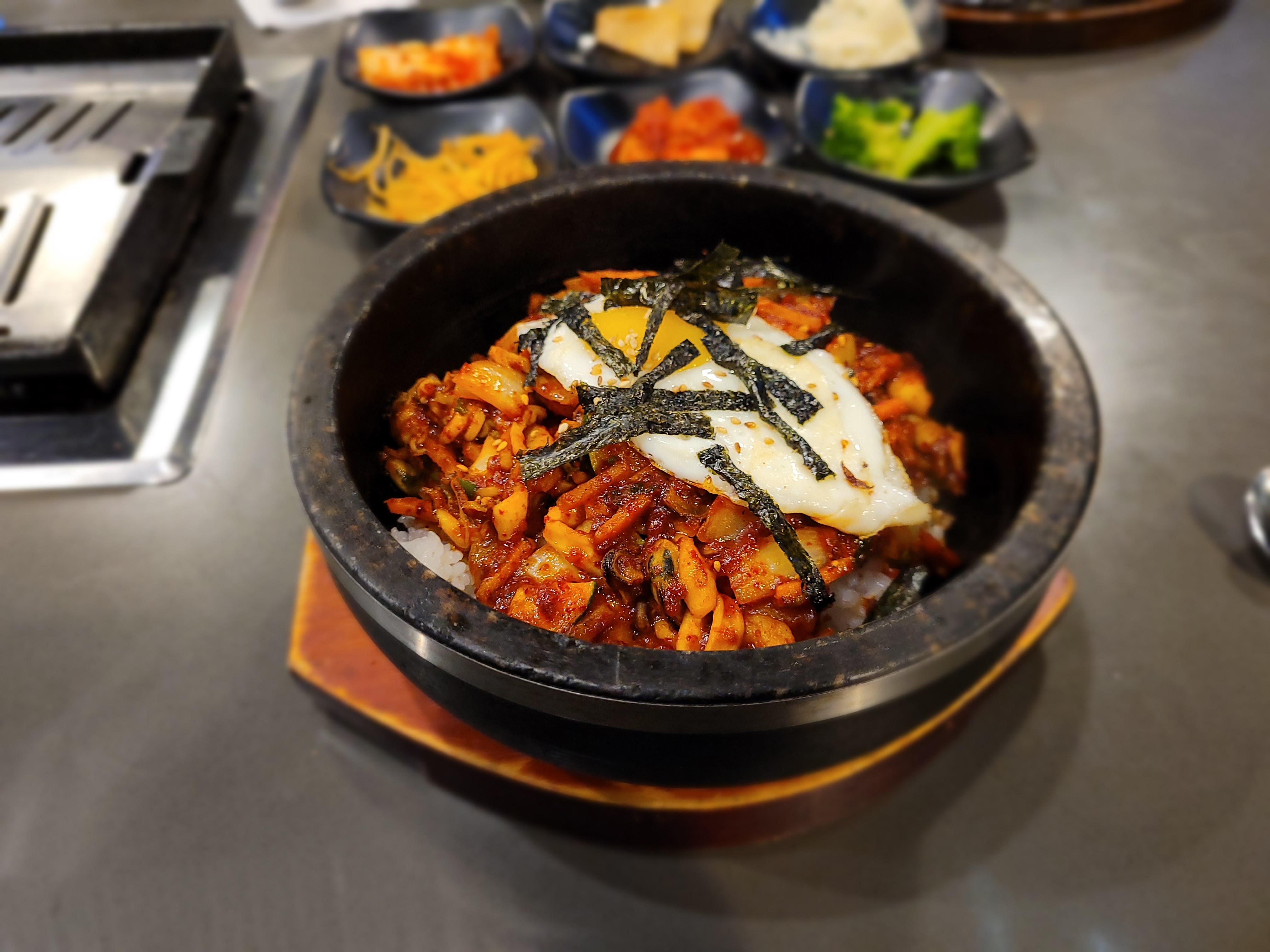 Dinner plans were not a complete bust though. I got to try Haemul Dolsot Bibimbap (seafood Bibimbap) for the first time, at K-Town Korean BBQ.
