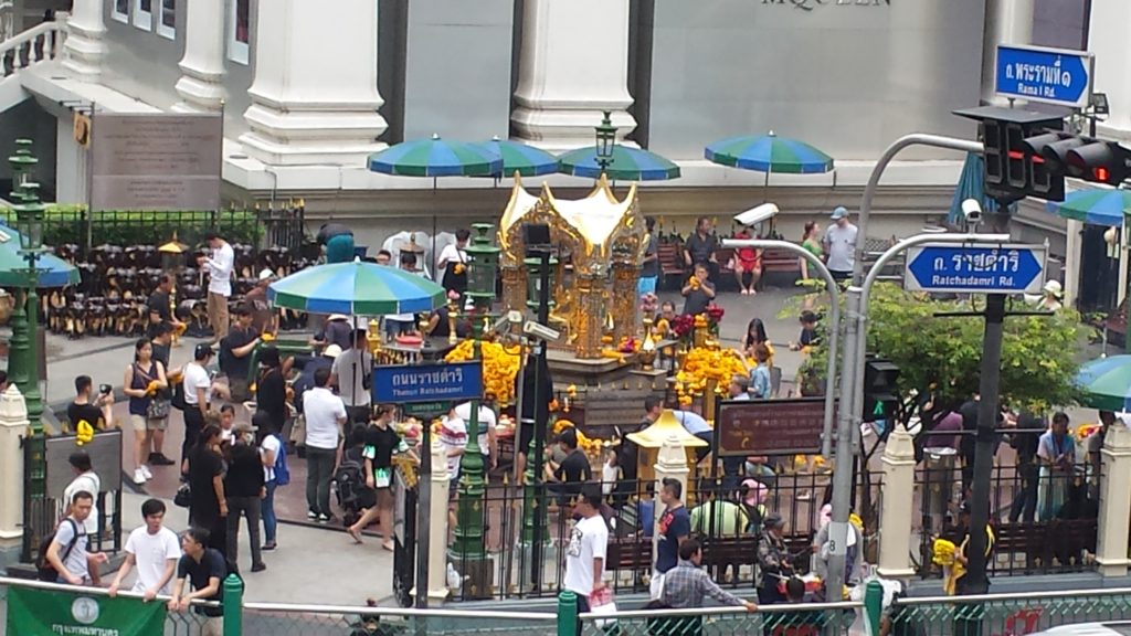 Two things struck us as we boarded the BTS metro at Chit Lom station; the first was seeing beautiful golden shrines tucked in between the office buildings and the second was the sense that Bob and I could have done the Bangkok portion of the tour ourselves. We did not feel threatened or fearful; it was probably the confidence we had gained from having gone to Europe a year earlier on our own.