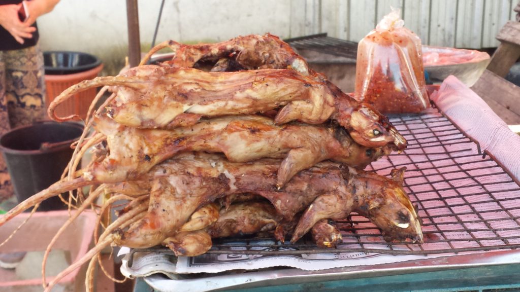 Our tour guide reassured us that the rice rats we were about to sample were of the highest quality. These were not filthy city rats who ate leftover scraps in dark alleys but their country cousins who feasted only on the organic insects and snails that thrived in the lush rice paddies. Tour members would have probably found them a bit more appetizing had their heads and tails been lobbed off first. Curiously though, I was not put off by the long naked tails or burnout eyes. As a Filipino, I had already eaten my share of strange proteins. Deep-fried day-old chicks anyone? I found the rats well-seasoned but a tad on the dry side.