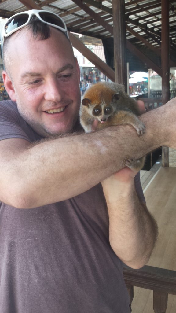 Bob, the total animal-lover, needed some primate-love (Slow Loris) after the stomach-churning boat ride through the khlongs to the market.