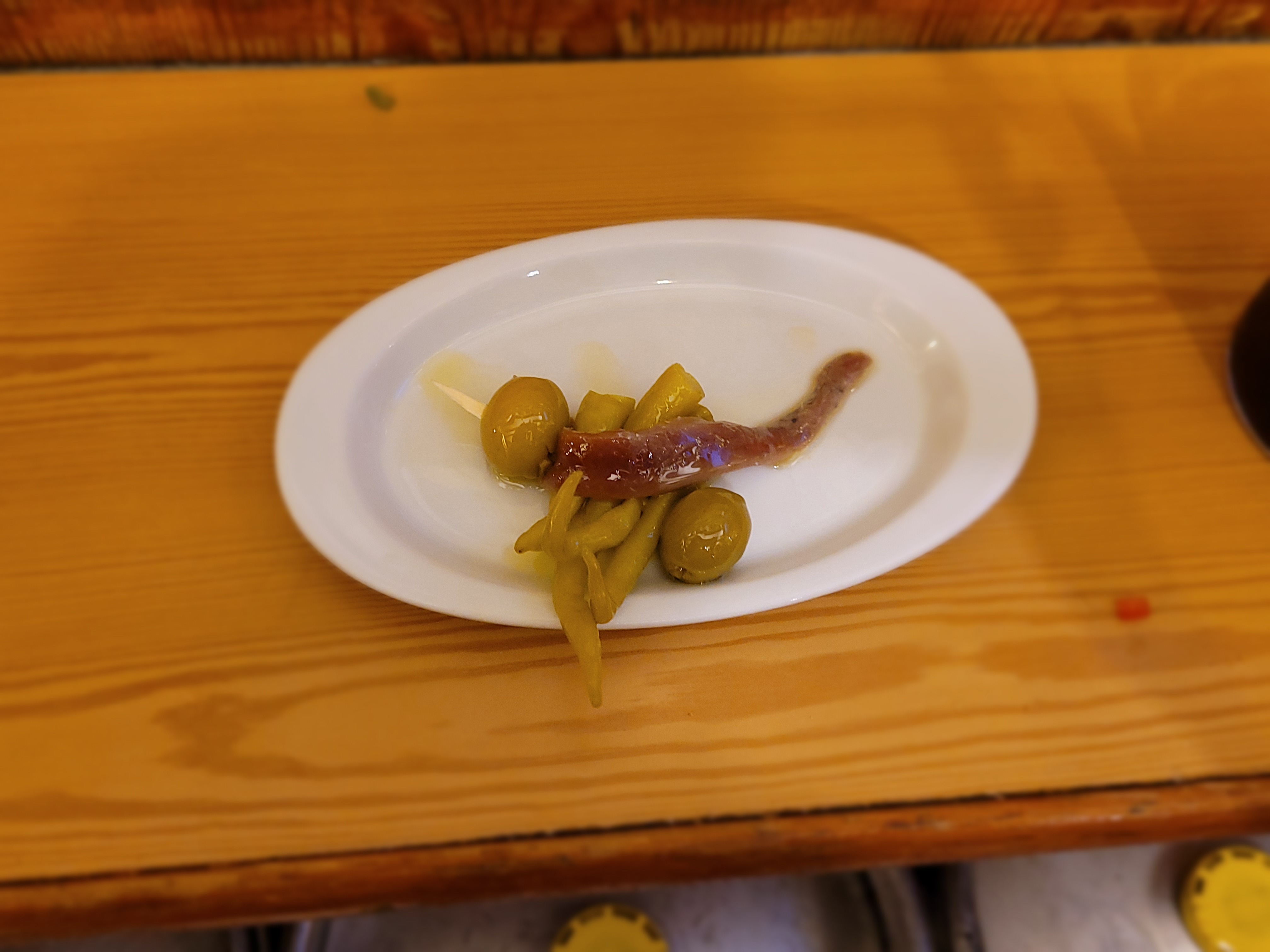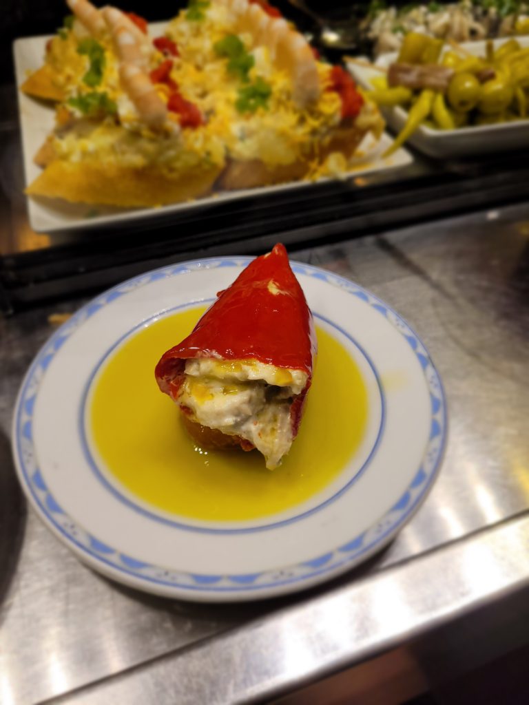Foie a la Plancha (Grilled Foie Gras) and Txipiron Relleno de Txaugurro (Baby squid stuffed with spider crab)at Bar Sport.Risotto de Puntapette con Idiazabal (Risotto with Basque Sheep’s Milk Cheese) atBorda Berri.Cotxinillo de Leitza Asado Muy Lentamente Con Cerveza, Sin Huesos, Crujiente (Suckling pig of Leiza, Slow-Roasted with Lager, Boneless and Crispy) at La Cuchara de San Telmo.Pulpo Gallego Cocido Y Asado con TximiTxurri Y Un Pure Sedoso de Colifor Y Aceite de Oliva (Roasted Galician Octopus with cauliflower and Olive Oil) atLa Cuchara de San Telmo.Oreja de Cerdo Iberico Prensada Y Crujiente, Humus Casero Y Tximitxurri (Iberian Pig Ear, Pressed and Crispy, Home made Humus and Chimichurri) at La Cuchara de San Telmo.Bakailao Kokotxa Pil-Pilekin (Cod Cheek and Pil-Pil Emulsion) atCasa Vergara.Itsas Trikua Betea Labean (Baked Stuffed Sea Urchin) atCasa Vergara.Olagarro Ketua Patata Kremarekin Eta Txistorra (Smoked Octopus with potato cream and Chorizo) atCasa Vergara. Azpizuna (Grilled Beef Sirloin) atGandarias.Bieira Brotxeta (Scallop Brochette) atGandarias.Olagarroa Ozpi-Oliotan (Octopus in Vinegar) atLa Vina.Otherworldly Burnt Basque Cheesecake at La Vina.The one that started it all, the Gilda (“Hilda”) Pintxo at Txepetxa–Anchovies, green olives, and green peppers.Barazkiak Piper Desberdinak, Tipula (Anchovies with Peppers) and Txangurroa Txangurro-Krema Zoragarria (Anchovies with Spider Crab Cream) atTxepetxa.The Spanish Tortilla (Egg with Potatoes) at Txepetxa.Ganbazko Burruntzia (Grilled Prawn Skewer) at Txepetxa.Txangurru Taraleta (Spider Crab on a Tart) and Ganbara.Ganba Eta Zainzuri Erdia (Prawn and Half White Asparagus) at Ganbara.Itsas-Zapo Eta Otarrainxka (Monkfish and King Prawn) at Ganbara.Pimiento Rojo Relleno De Bonito Con Salsa Tartara Y Vinagreta De Jerez at Bar Martinez.Taco De Bacalao De Islandia Con Pimiento Roja & Verde at Bar Martinez.